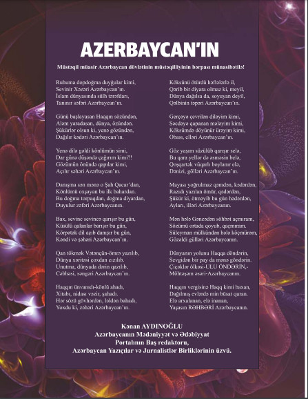 Azərbaycan Jurnalistlər Birliyi Sumqayıt şəhər təşkilatının təşəbbüsü ilə gerçəkləşdirilən “Gənc yazarların əsərlərinin Qardaş Türkiyə mətbuatında yayınlanmasına dəstək” layihəsi çərçivəsində Gündəlik Analitik İnformasiya Agentliyinin Mətbuat xidmətinin rəhbəri, Azərbaycan Yazıçılar və Jurnalistlər Birliklərinin üzvü, şair-jurnalist Kənan Aydınoğlunun Azərbaycanın dövlət müstəqilliyinə həsr olunmuş "Azərbaycanın" adlı şeiri Qardaş Türkiyə Cümhuriyyətinin Tokat şəhərində fəaliyyət göstərən TOŞAYAD (Tokat Şairler ve Yazarlar Derneği) yayın organı "Kümbet" eğitim, kültür, sanat ve edebiyat dərgisinin 56-cı sayısında dərc olunub.